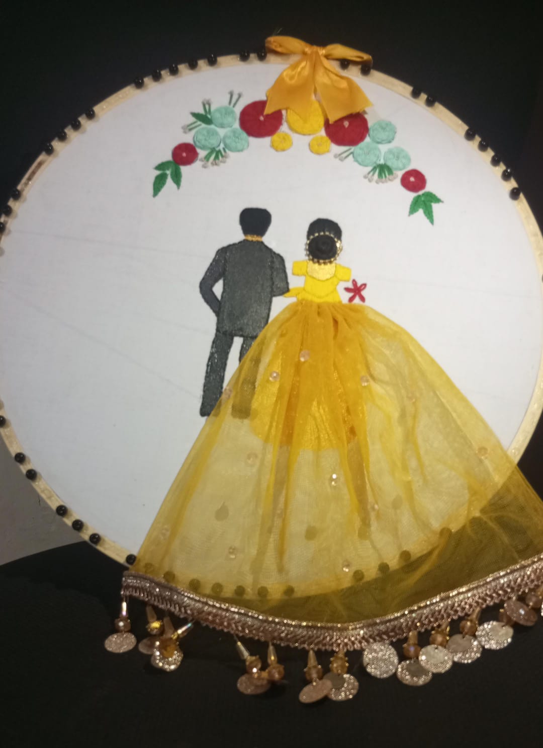 Perfect as a wedding gift, anniversary keepsake, or home wall décor, this hoop comes finished with bead edging and a ribbon bow for an elegant touch. Whether hung on a wall or displayed on a shelf, it brings an artistic and heartfelt expression of love to your home.